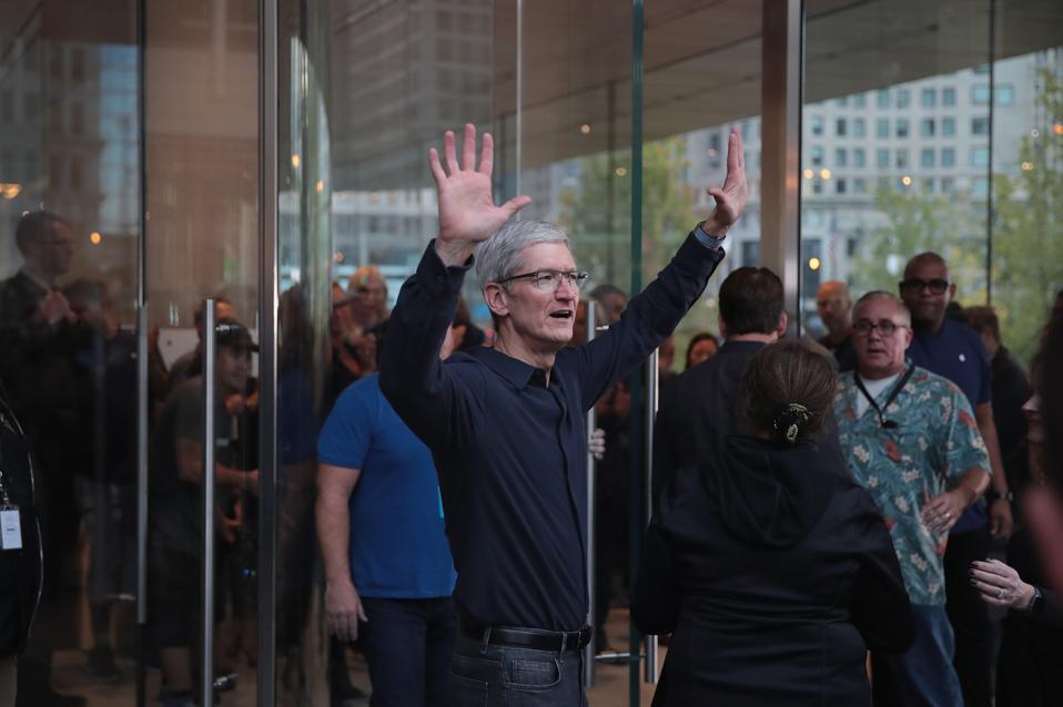 Apple CEO Tim Cook greets guests at the grand opening of Apple's Chicago flagship store on Michigan Avenue October 20, 2017 in Chicago, Illinois (Photo by Scott Olson/Getty Images)