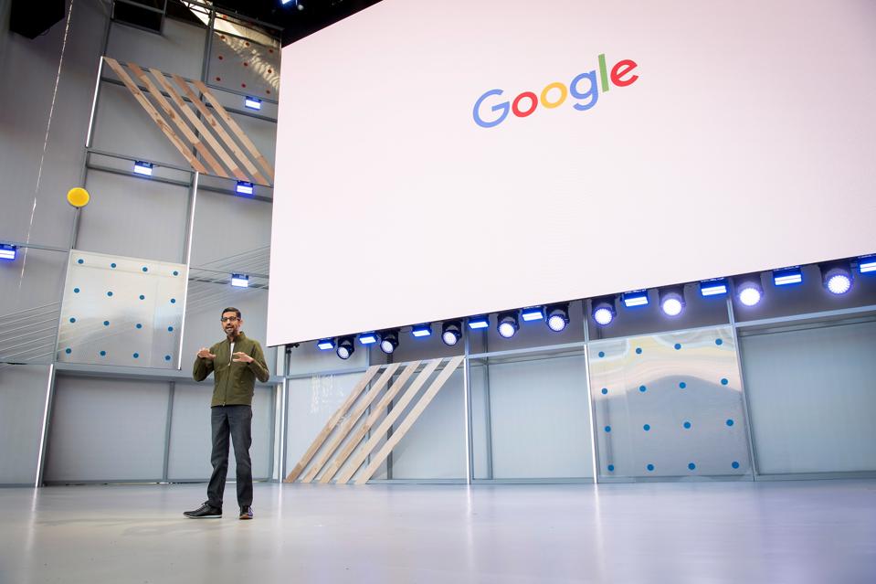 Sundar Pichai,chief executive officer of Google speaks during the Google I/O Developers Conference in Mountain View, California. (David Paul Morris/Bloomberg)